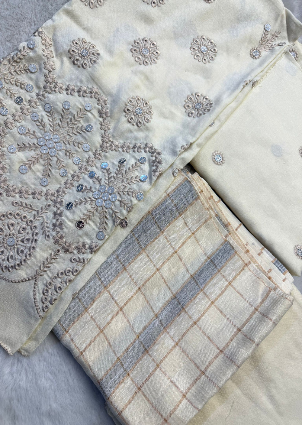 Accessories: Please note that stitched/unstitched suits may or may not include accessories. Some accessories shown in images are for modeling purposes only and may not be included with the suits.