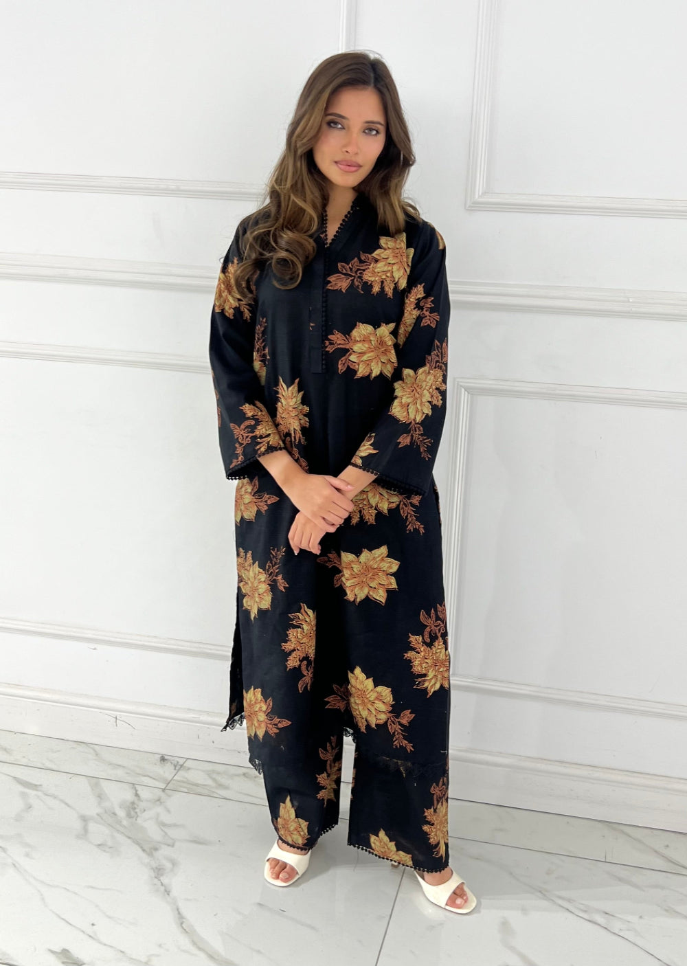 Occasionally, beading/sequences may become displaced due to the handmade nature of our products. Please understand that this is not considered a fault. We cannot be held responsible for any variations or displacement of beading/sequences.