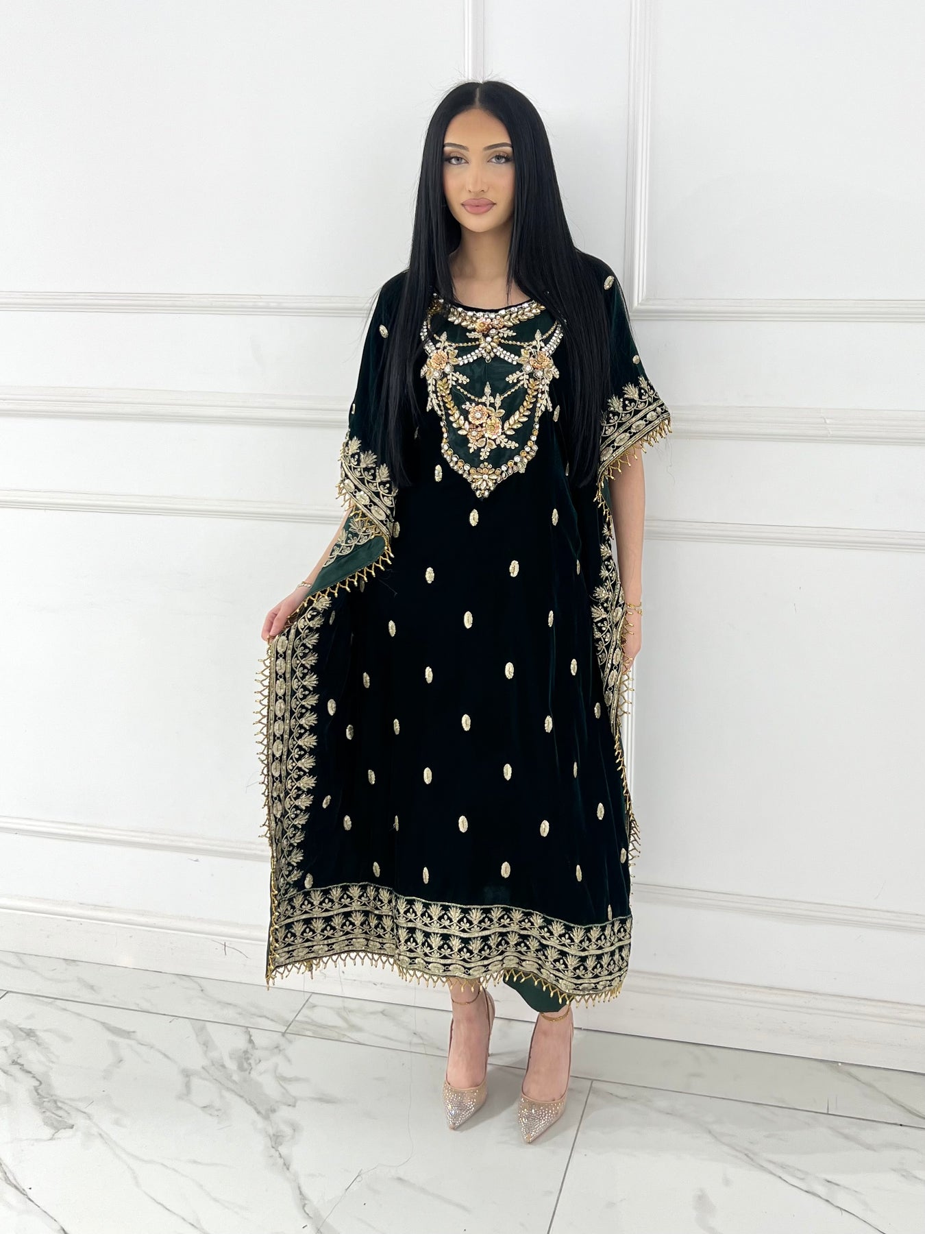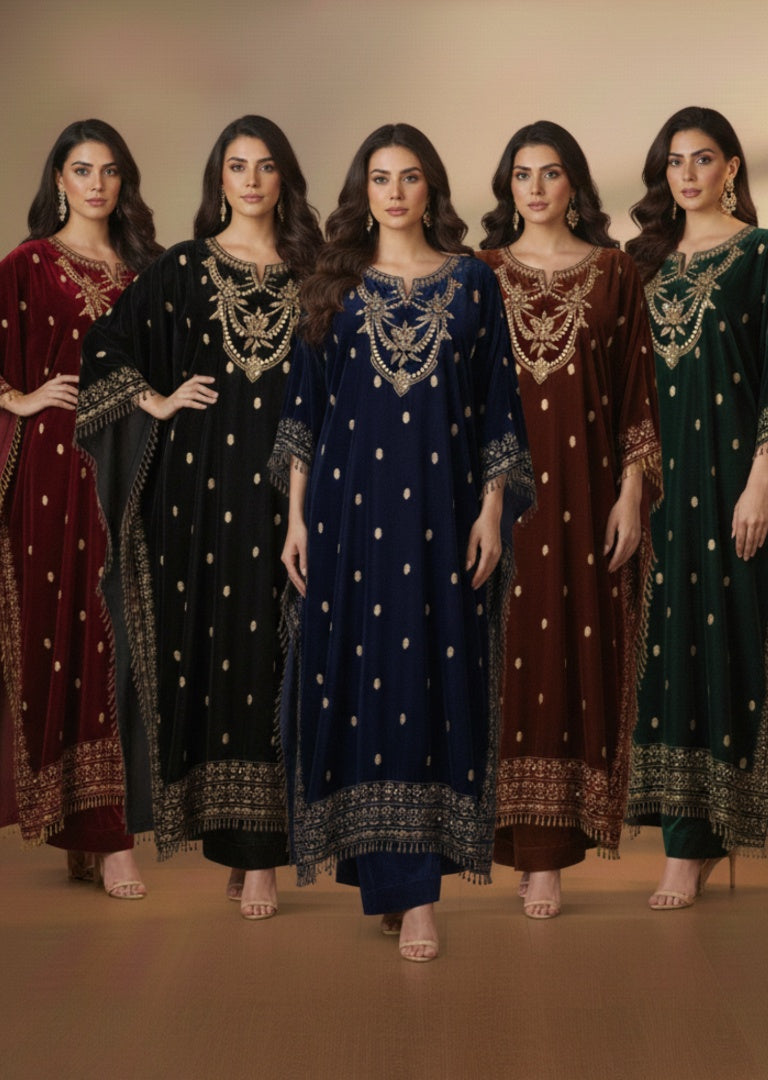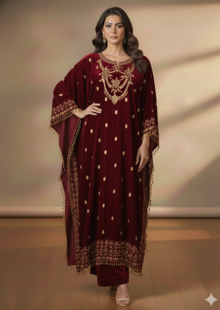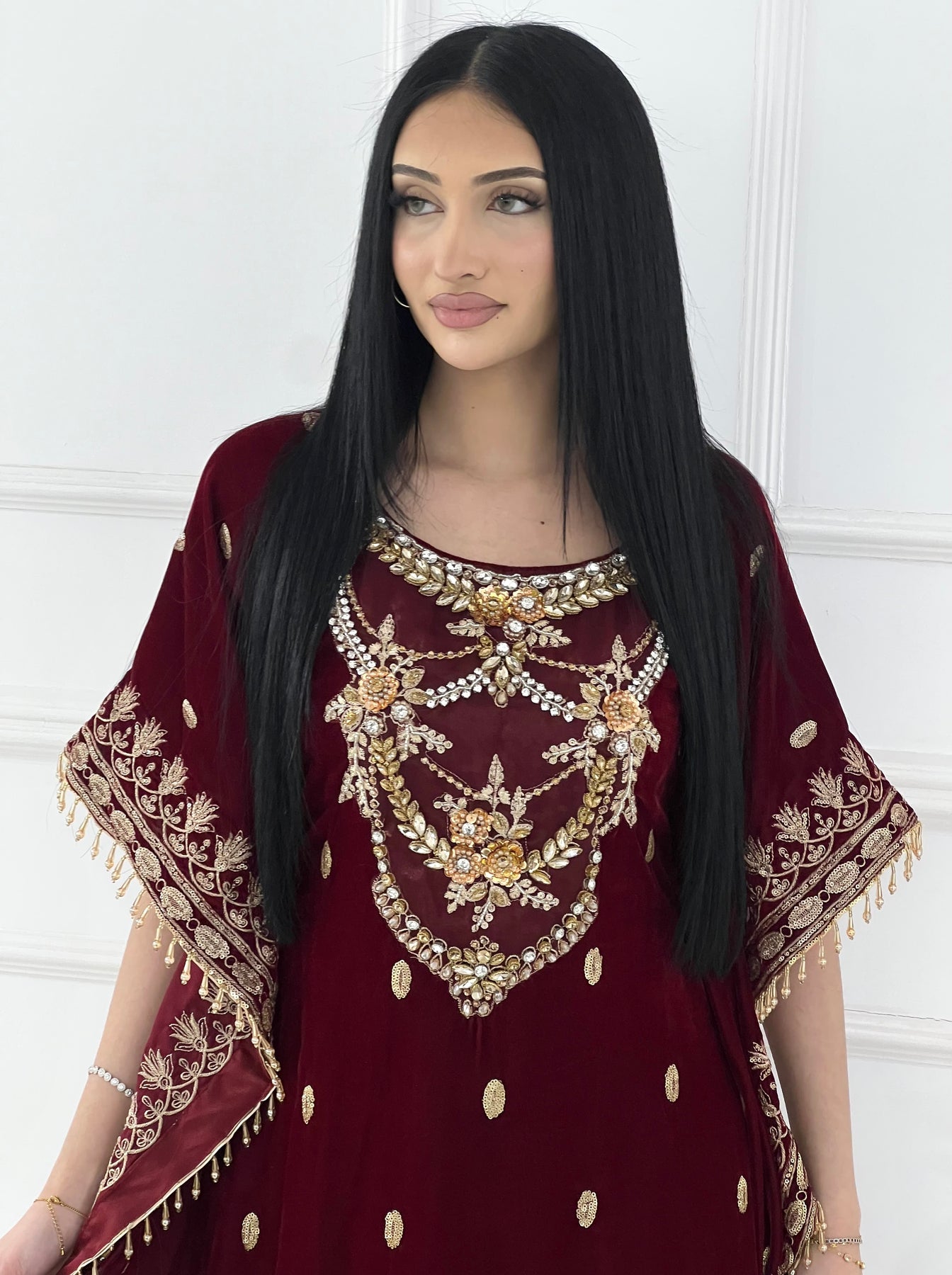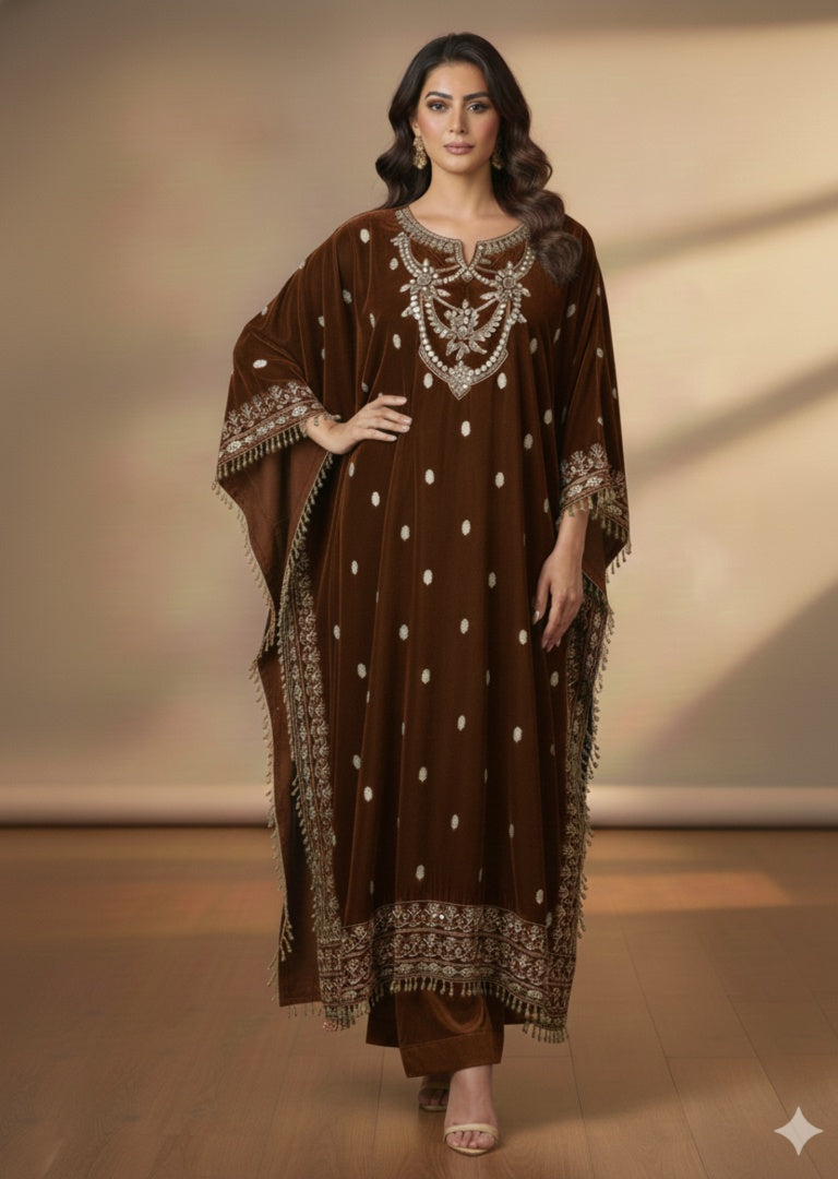 Discover luxury in the SFSH-09 Fancy Velvet Jacket Kaftan, where sumptuous velvet fabric meets exquisite craftsmanship. This opulent piece drapes beautifully, creating an effortlessly sophisticated look perfect for celebrations and upscale events. The rich texture and elegant design command attention while providing exceptional comfort. Transform any occasion into something memorable with this statement-making kaftan that celebrates your refined taste.