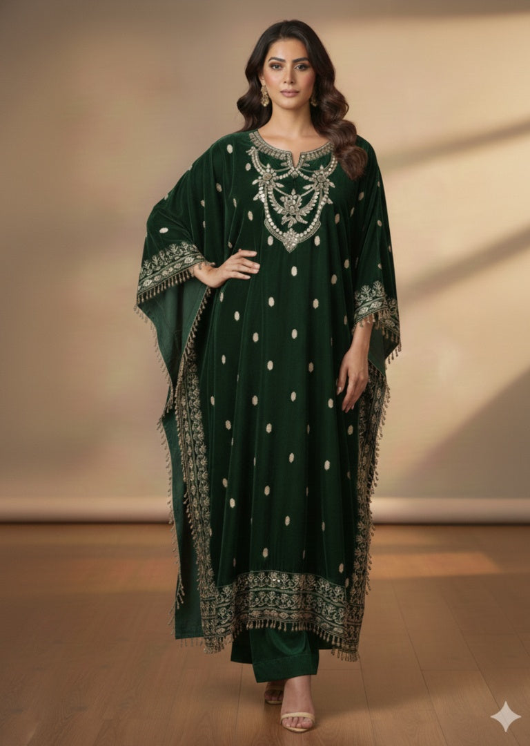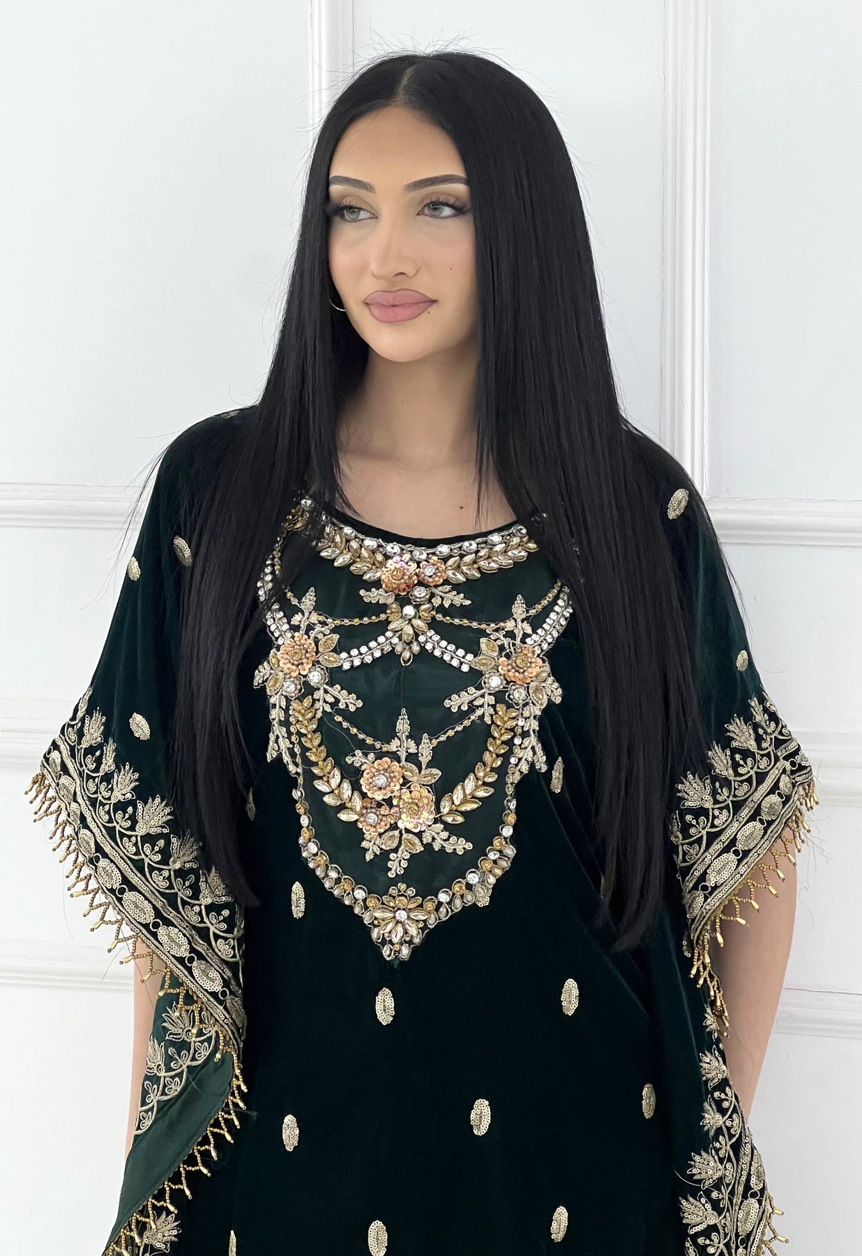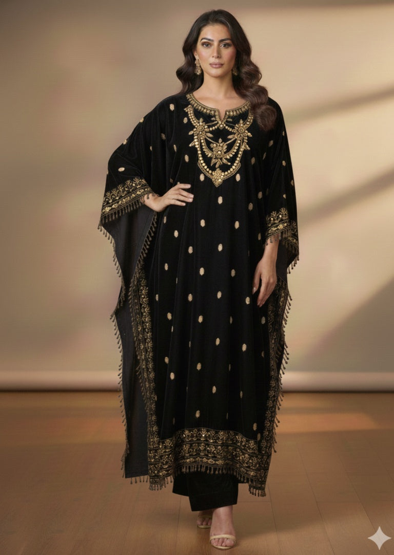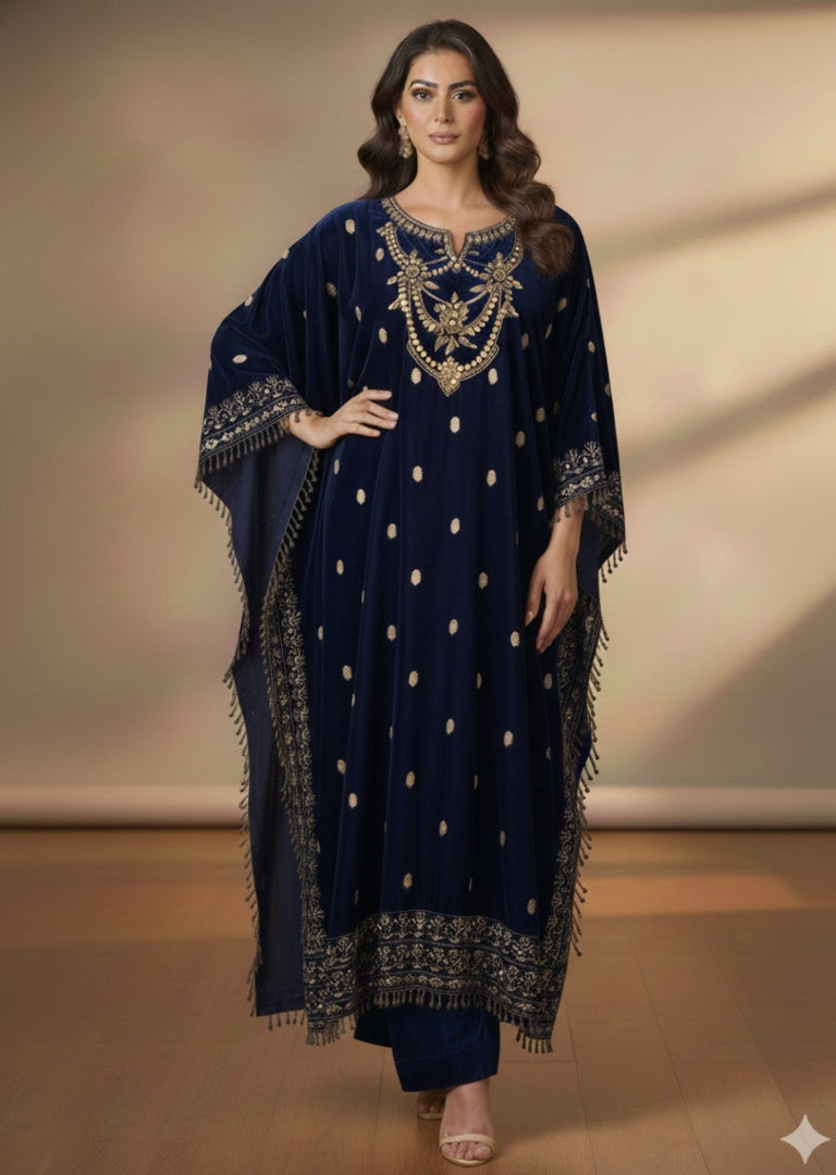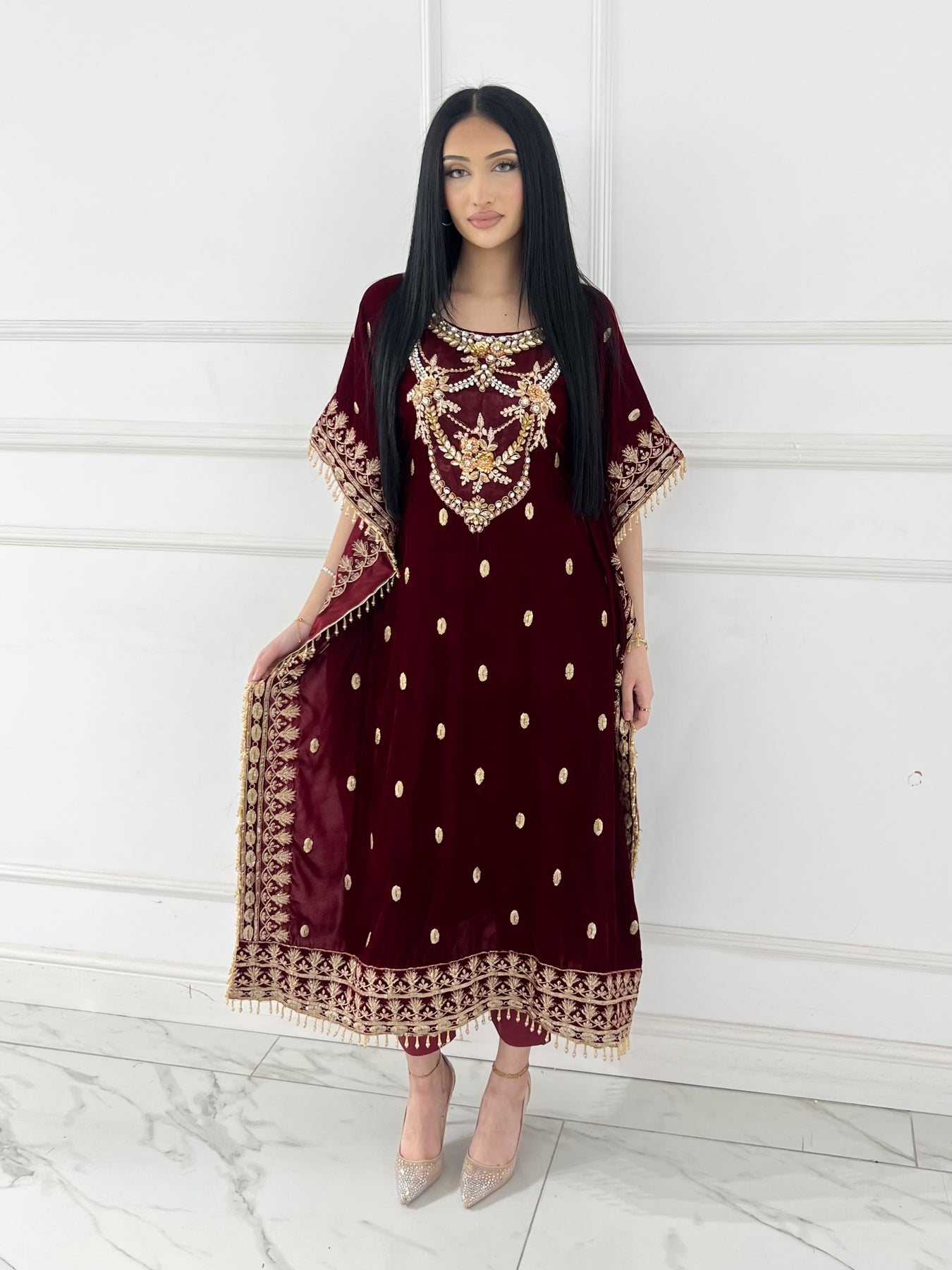 Discover luxury in the SFSH-09 Fancy Velvet Jacket Kaftan, where sumptuous velvet fabric meets exquisite craftsmanship. This opulent piece drapes beautifully, creating an effortlessly sophisticated look perfect for celebrations and upscale events. The rich texture and elegant design command attention while providing exceptional comfort. Transform any occasion into something memorable with this statement-making kaftan that celebrates your refined taste.