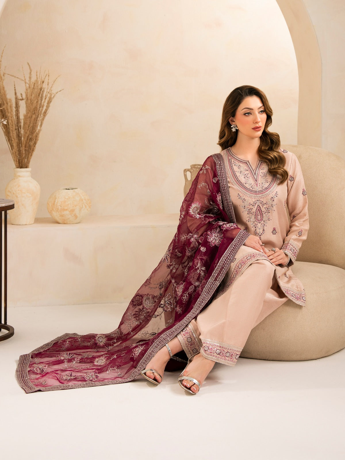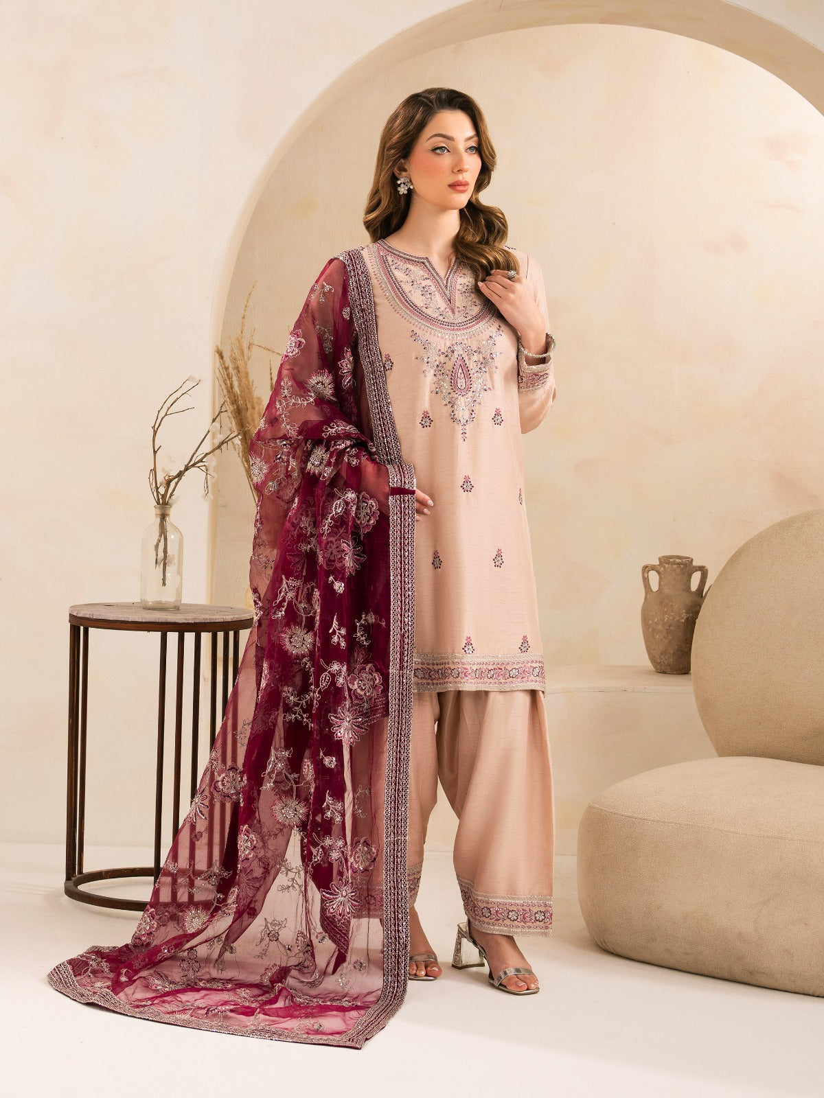 Dress to impress in this stunning deep maroon embroidered suit - the GNT- Levander Garnet. Perfect for formal events and gatherings, its exquisite embroidery and rich color will make you stand out in any crowd. Feel confident and elegant in this sophisticated piece that fits beautifully.