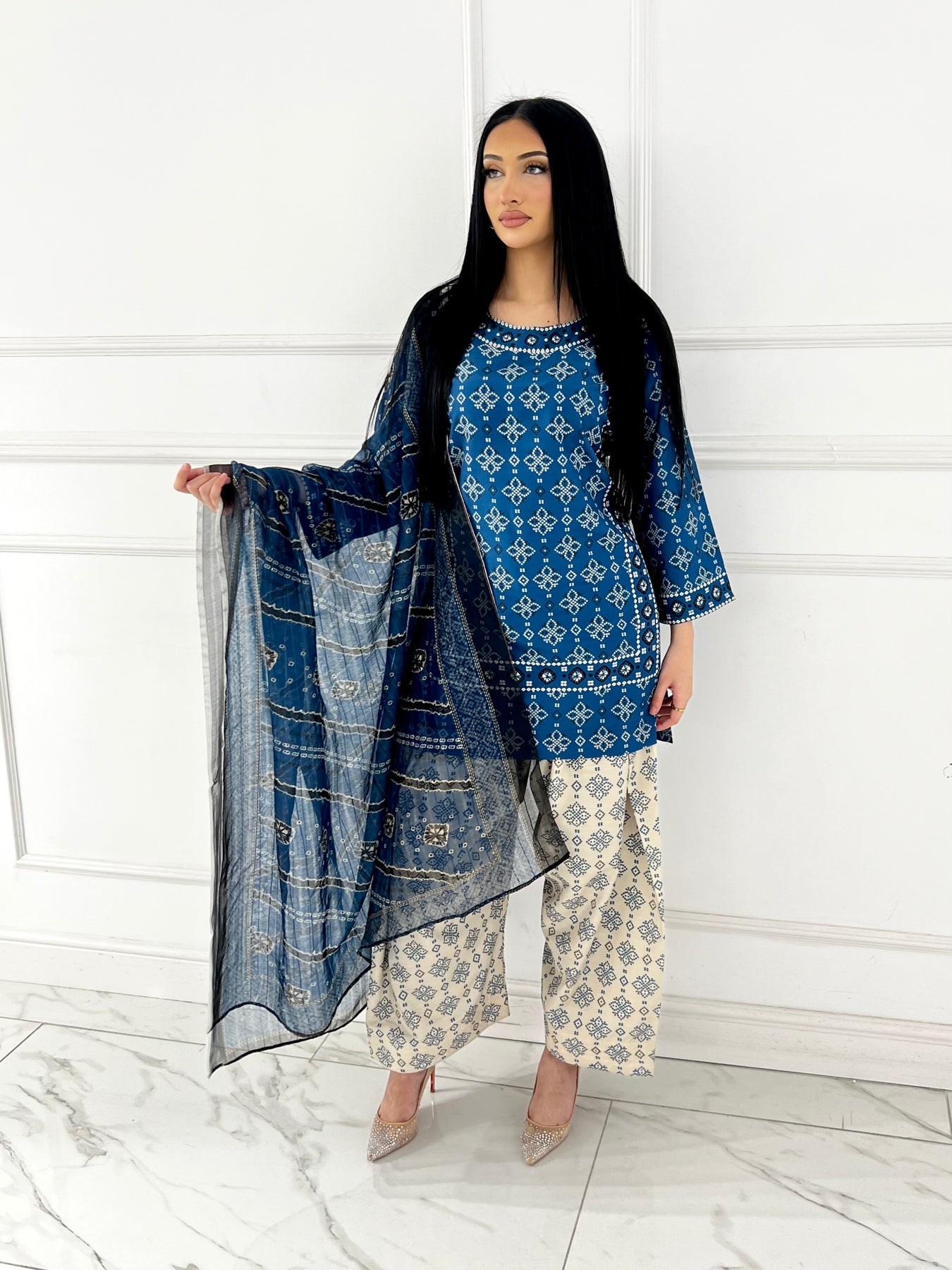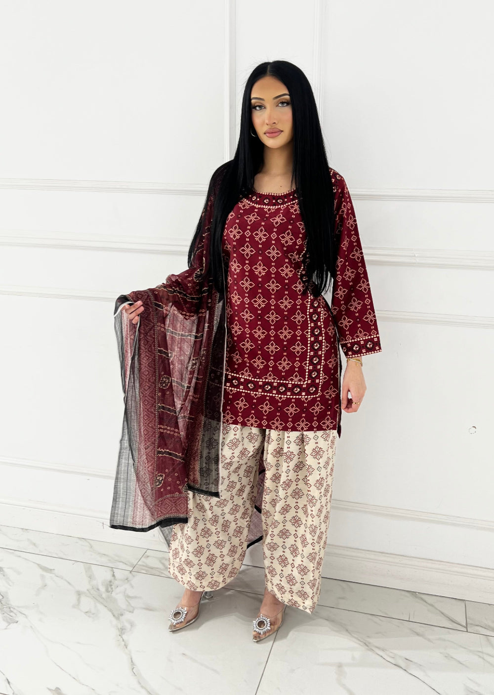 Elevate your wardrobe with the RBY-101 Readymade Khadar Silk Ajrak Suit, a stunning fusion of traditional craftsmanship and contemporary elegance. Crafted from premium khadar silk, this suit features the iconic ajrak print—a time-honoured textile art form that adds cultural richness and visual depth to your ensemble. The readymade design ensures a perfect fit straight from the box, eliminating the need for tailoring while maintaining impeccable tailoring standards. Ideal for weddings, celebrations, or refined everyday wear, this suit combines comfort with sophistication. The luxurious silk fabric drapes beautifully, offering a graceful silhouette that flatters every frame. Experience the perfect blend of heritage and modern style with this exquisite piece.