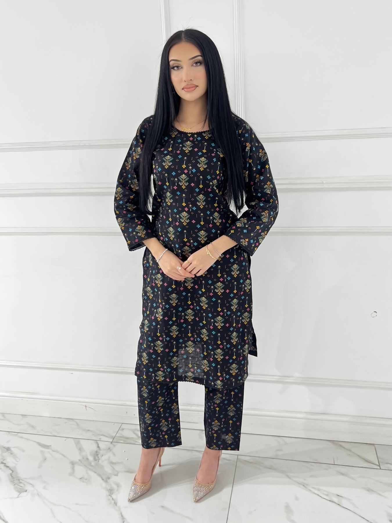 This vibrant Readymade khaddar Co-ord features a two-piece printed outfit that is perfect for the winter season. Made with high-quality lawn fabric, it offers both comfort and style. Elevate your wardrobe with this must-have piece and make a statement wherever you go!