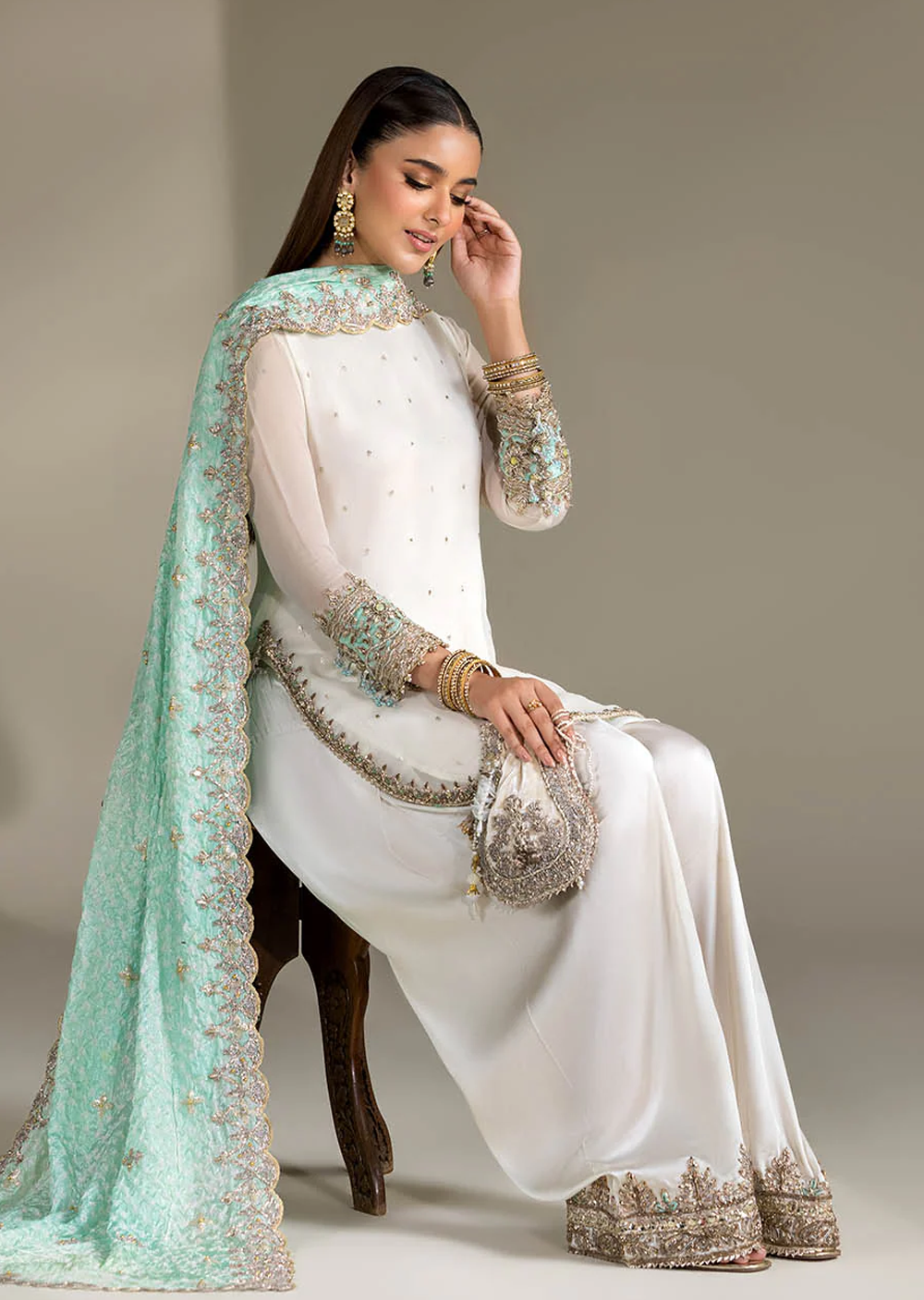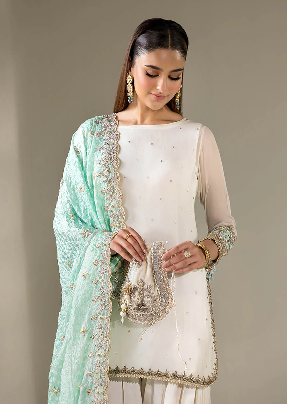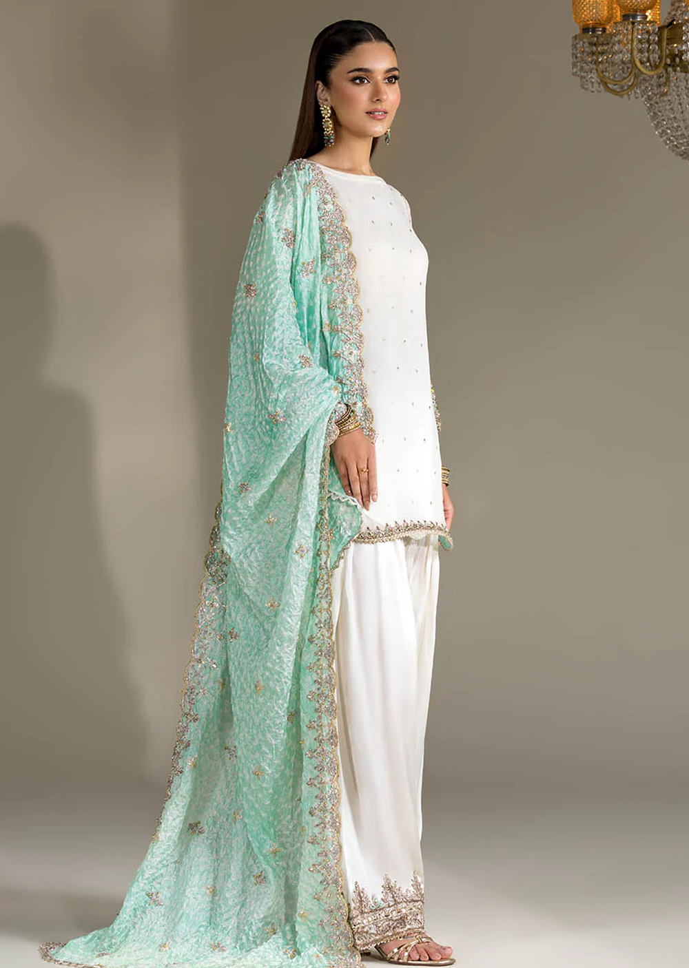 • Shirt: Crinkle Chiffon hand-embroidered (Kora, dabka & Gotta work)