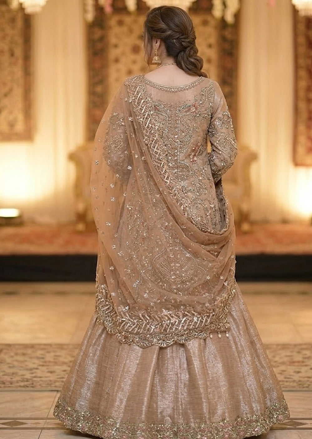 Step into elegance with this Antique Gold Choli & Lehenga Set from our 2026 Chiffon Collection. The short choli dazzles with intricate antique gold sequins and hand-crafted stonework, adorned with floral motifs that sparkle with every movement.