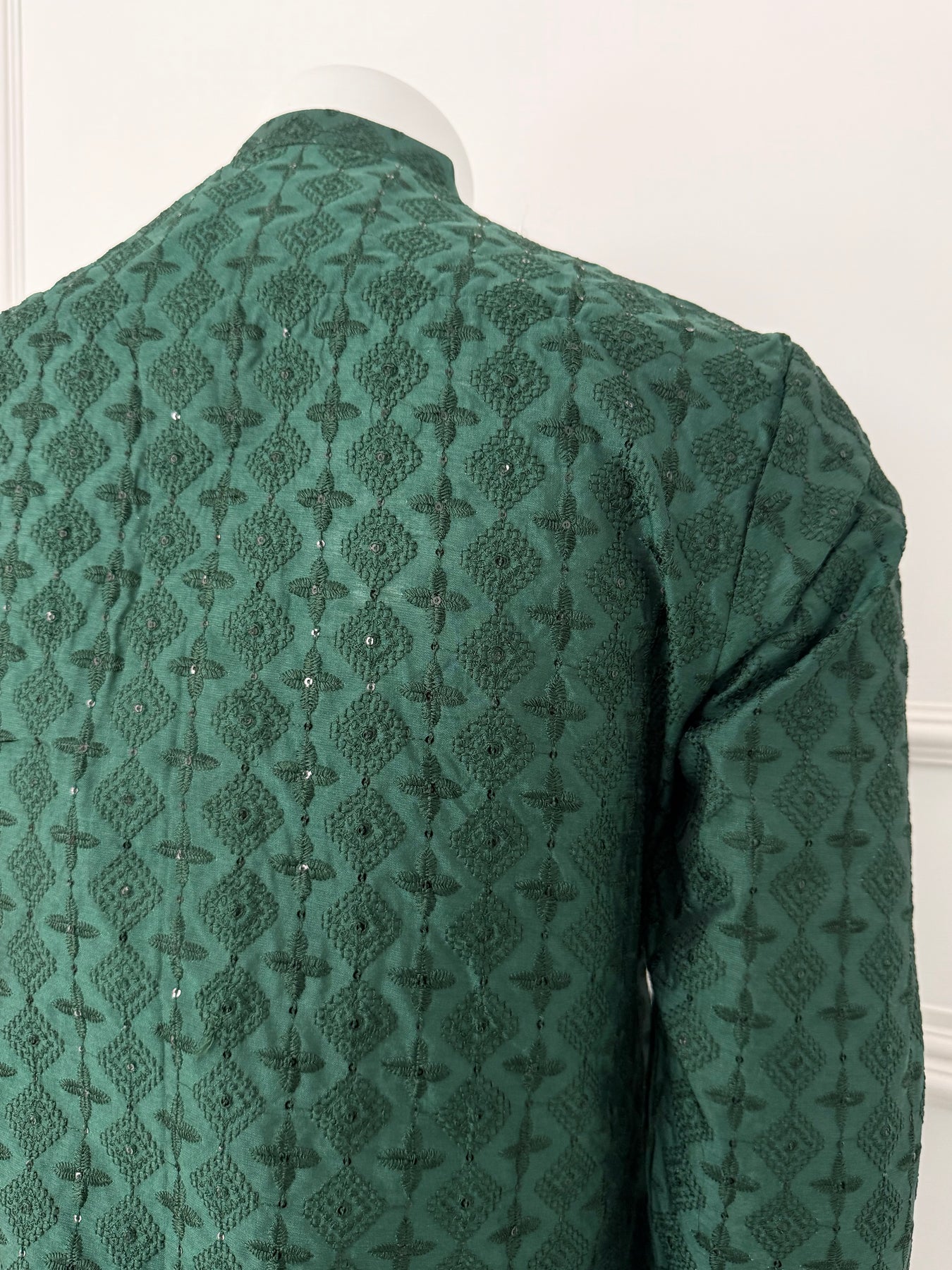 Experience elegance with the HKF103 Men's Embroidered Kurta Trouser set, crafted from soft raw silk for a comfortable yet refined feel. The intricate embroidery adds a touch of sophistication, making it perfect for special occasions or stylish everyday wear. Paired with matching trousers, this ensemble offers a timeless look that combines tradition with modern comfort. Elevate your wardrobe with this exquisite kurta trouser set designed to impress.
