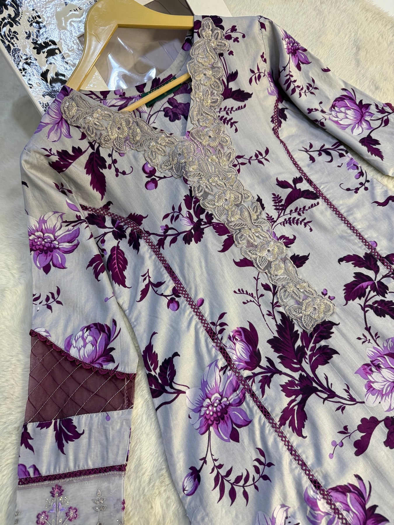 MDNA-24 - Readymade Embroidered LINEN Outfit - Memsaab Online