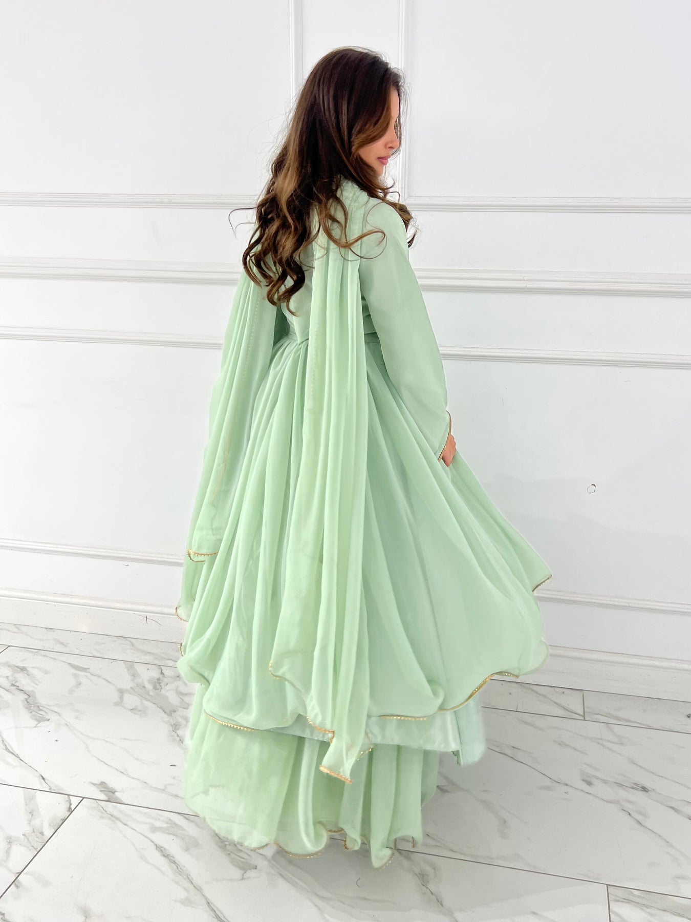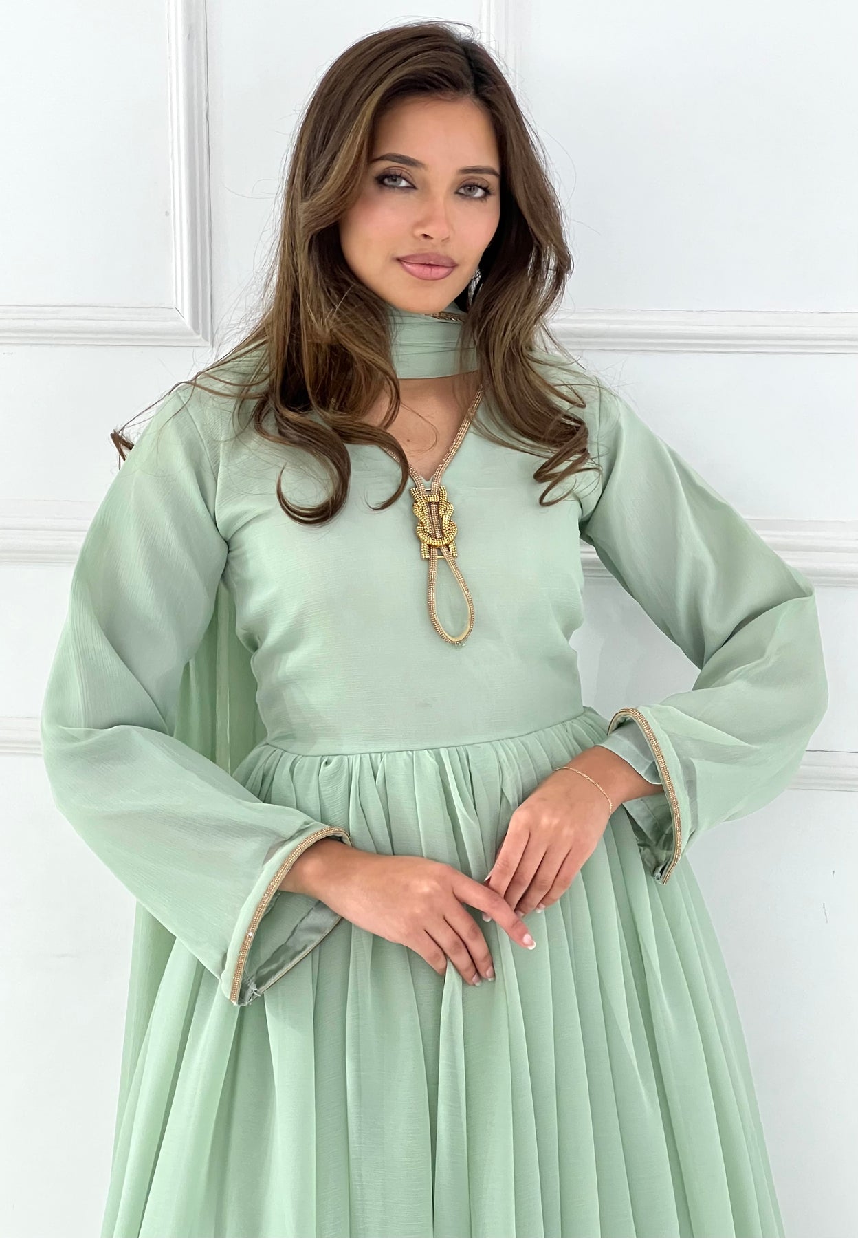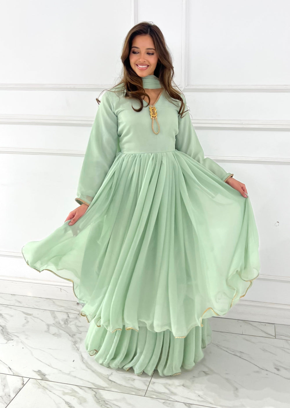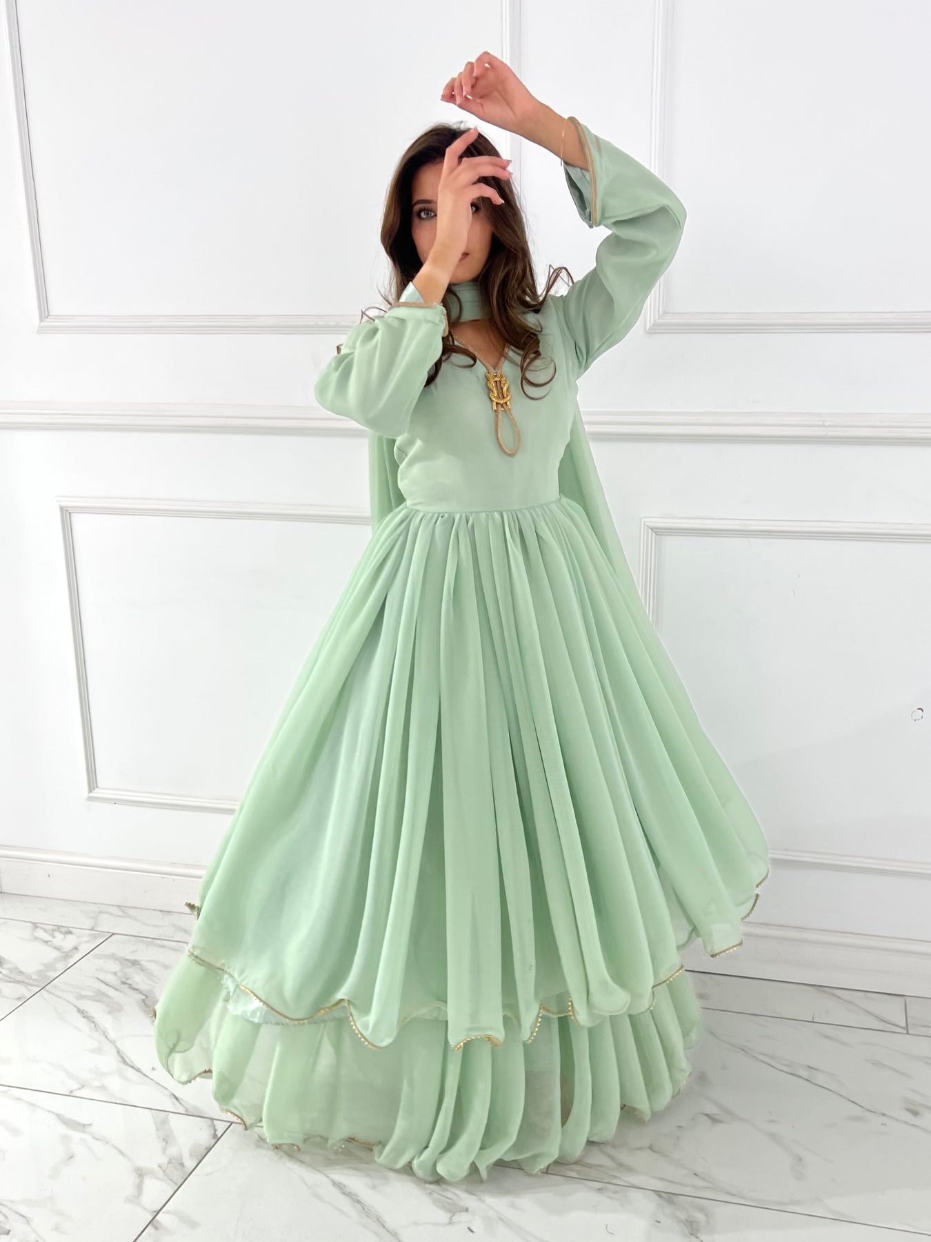 This is a ready-to-wear formal frock made with high-quality chiffon fabric. The design is elegant and suitable for party or formal occasions, part of the Sehrish B Formals collection.