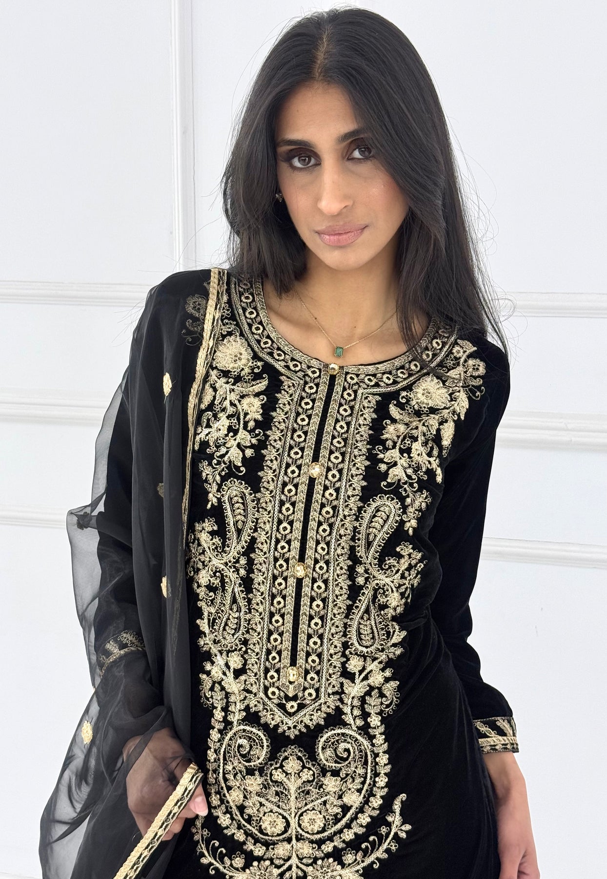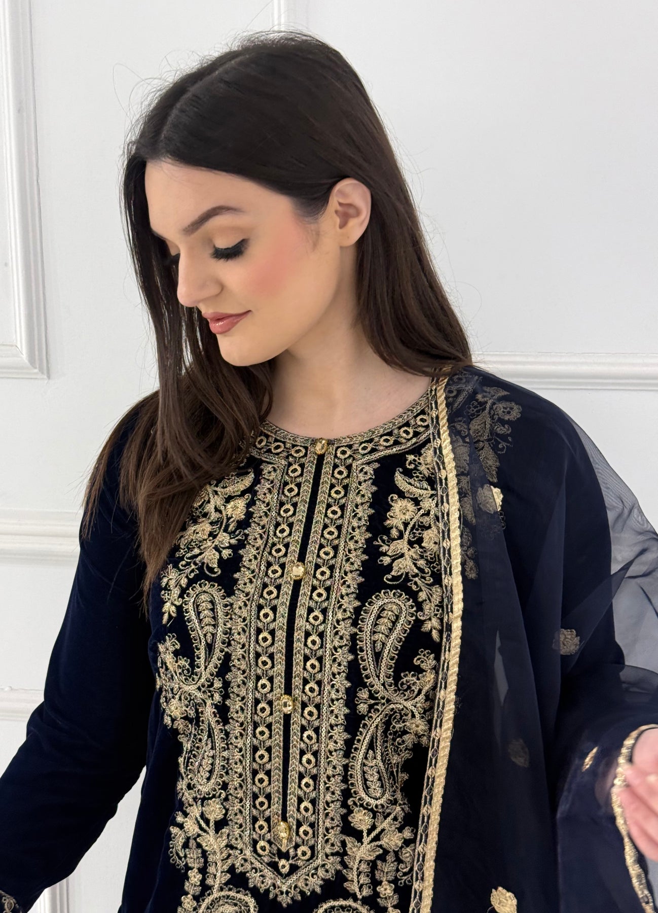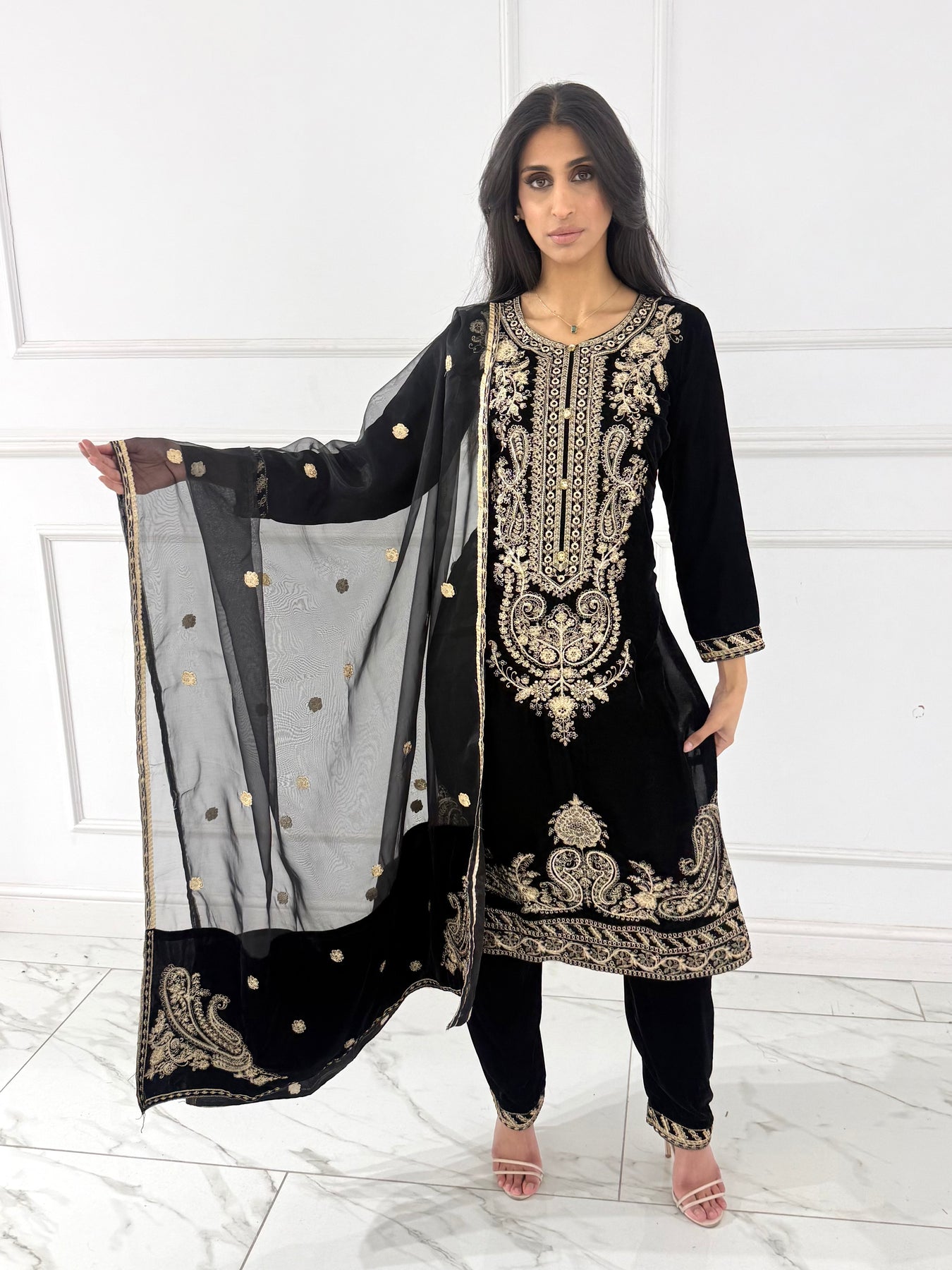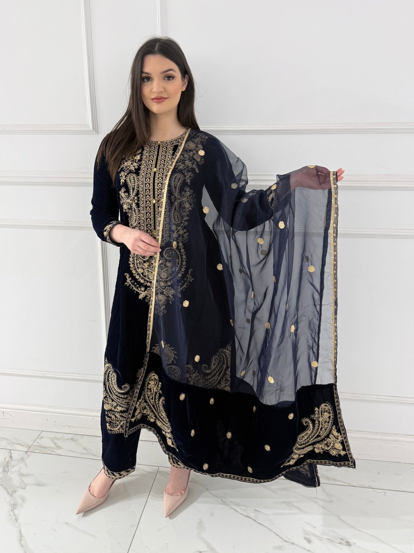 Elevate your wardrobe with our HK356 Readymade Velvet Outfit, a luxurious choice for the modern woman. Crafted from sumptuous velvet fabric, this sophisticated ensemble combines comfort with timeless elegance. Perfect for special occasions, festive celebrations, or making a statement at any gathering, this ready-to-wear piece requires no tailoring. The rich texture and refined design ensure you'll stand out while feeling confident and poised. Embrace effortless style without compromising on quality or glamour.