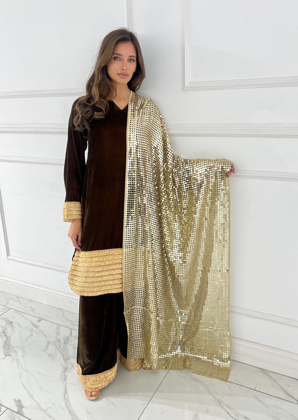 Elevate your formal wardrobe with the SRB2651 Readymade Velvet Sehrish B collection. Crafted from luxurious velvet fabric, this piece combines timeless elegance with contemporary design, perfect for weddings, celebrations, and special occasions. The rich texture and sophisticated draping create an instantly polished look without the need for tailoring. Designed for the modern woman who values both comfort and style, this readymade ensemble lets you step out with confidence and grace. Experience the perfect blend of traditional craftsmanship and modern convenience.