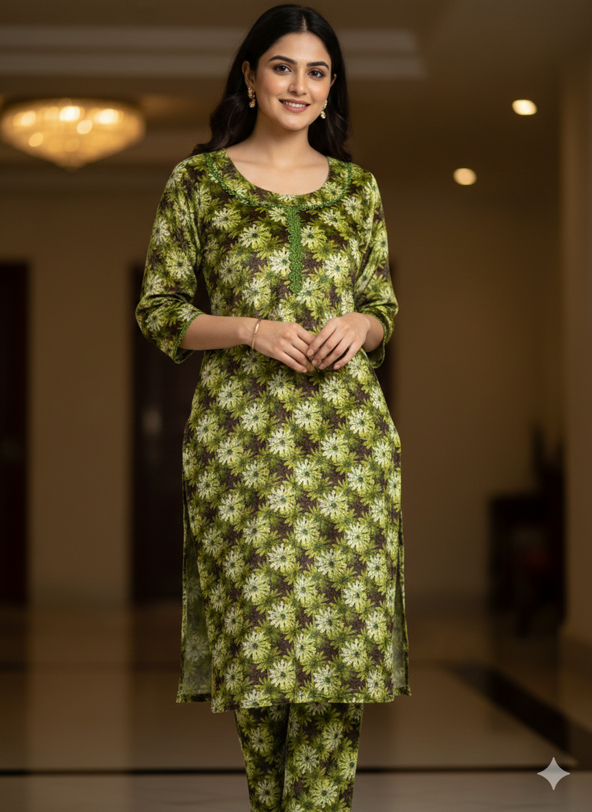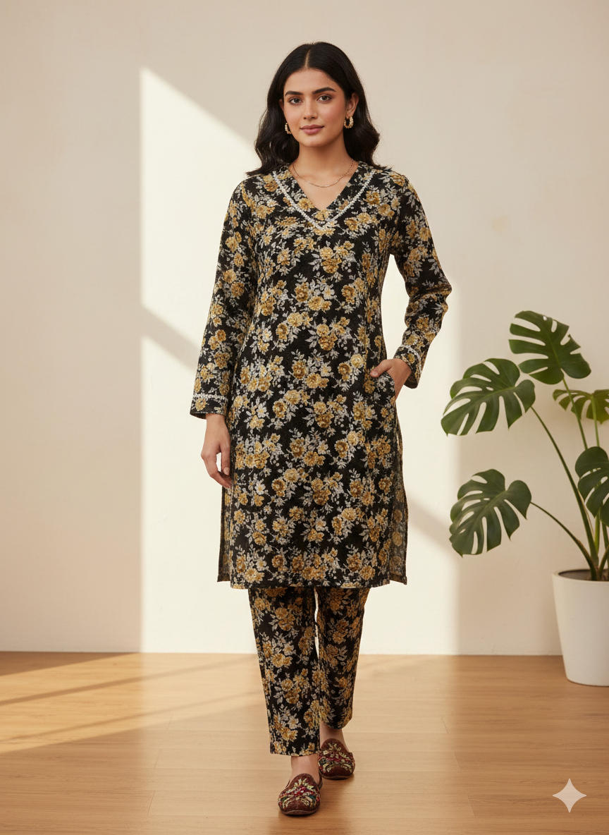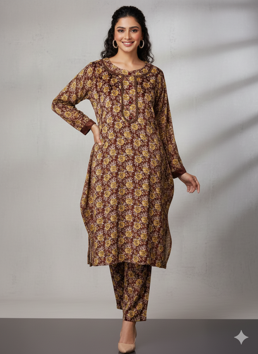 ALM-101 - PRINTED VELVET CO-ORD - Memsaab Online