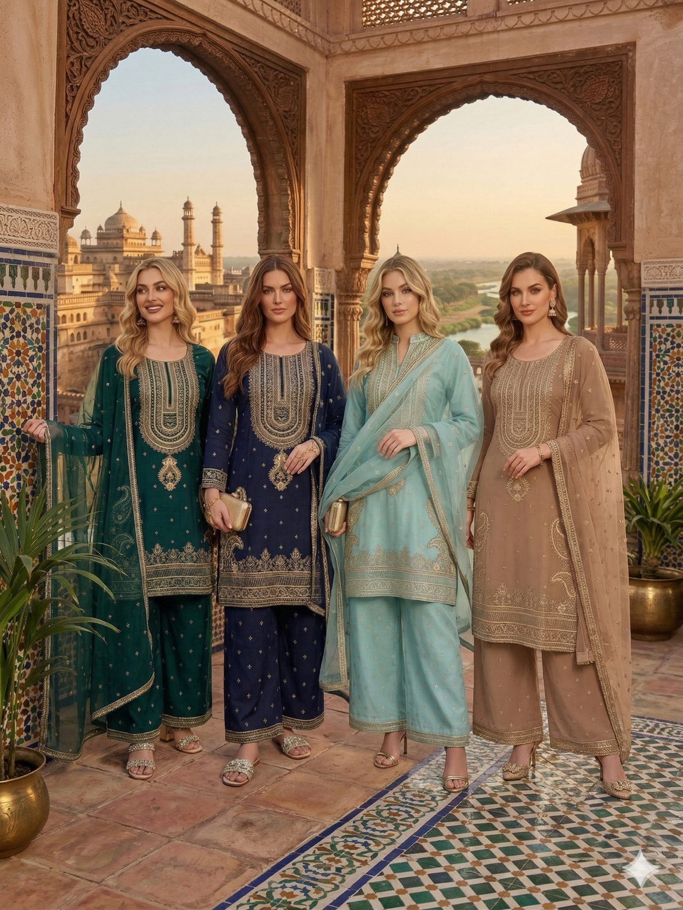 Accessories: Please note that stitched/unstitched suits may or may not include accessories. Some accessories shown in images are for modeling purposes only and may not be included with the suits.