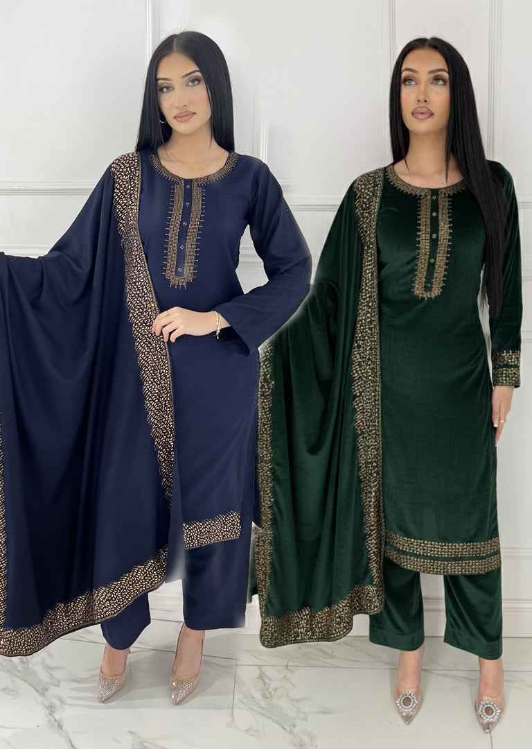 Accessories: Please note that stitched/unstitched suits may or may not include accessories. Some accessories shown in images are for modeling purposes only and may not be included with the suits.