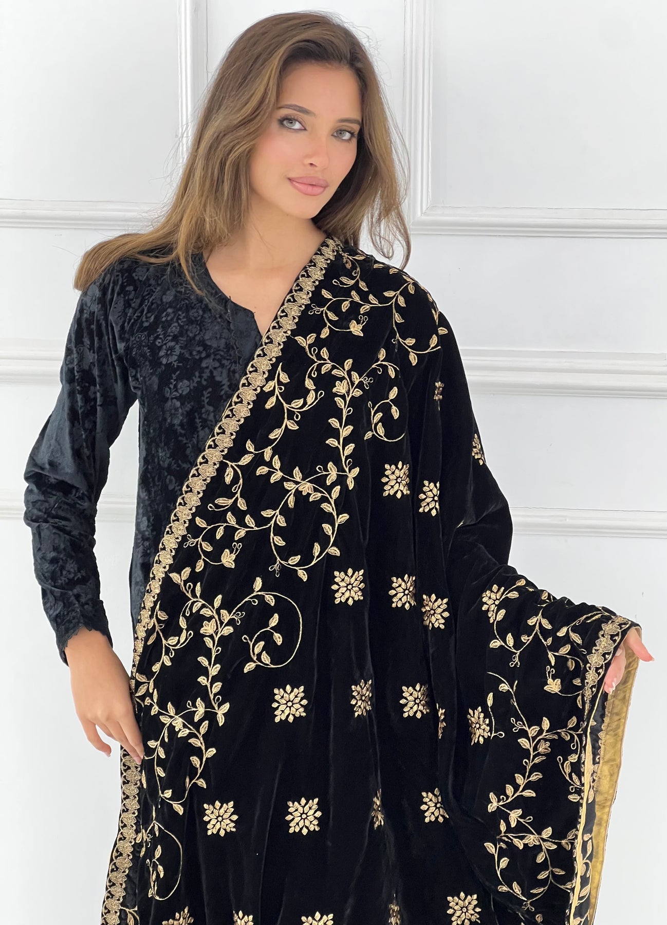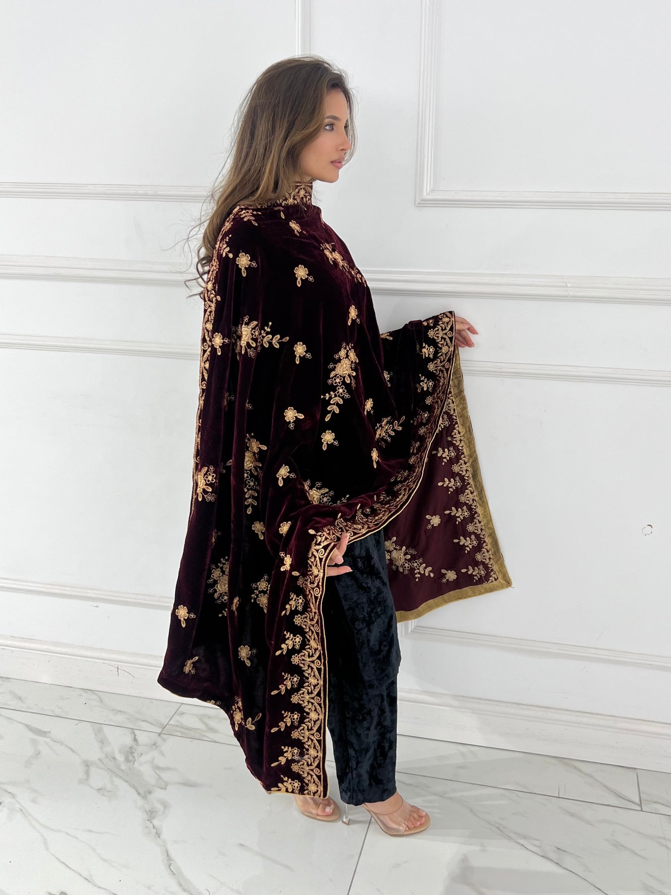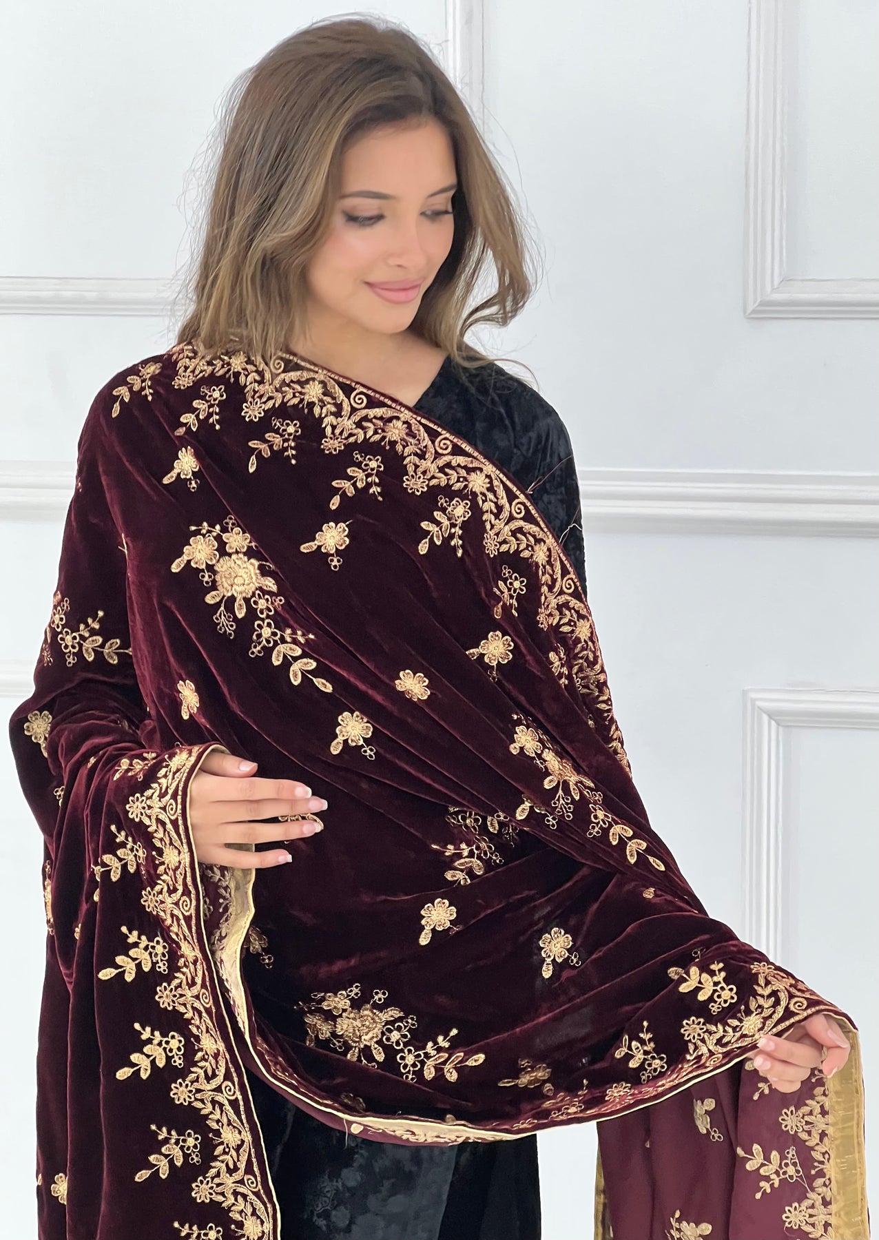 Experience elegance with this beautifully crafted velvet shawl adorned with exquisite embroidery.
