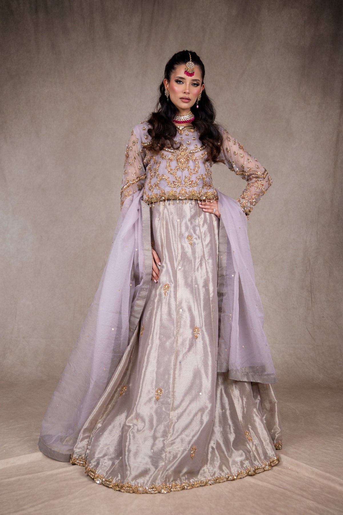 Introducing the SRB2612 a stunning lehenga choli that epitomizes timeless elegance. The intricately embellished organza top showcases exquisite handwork that catches light beautifully, while the luxurious zari tissue skirt features elaborate detailing that commands attention. Paired with a graceful organza scarf, this three-piece ensemble is designed for those who appreciate refined craftsmanship and sophisticated style. Perfect for weddings, celebrations, and special occasions, the Raya promises to make you feel absolutely radiant and unforgettable.