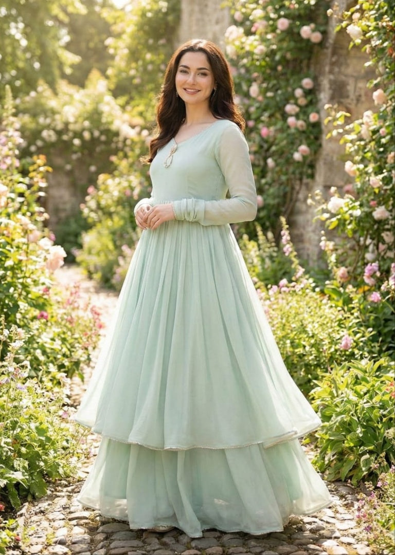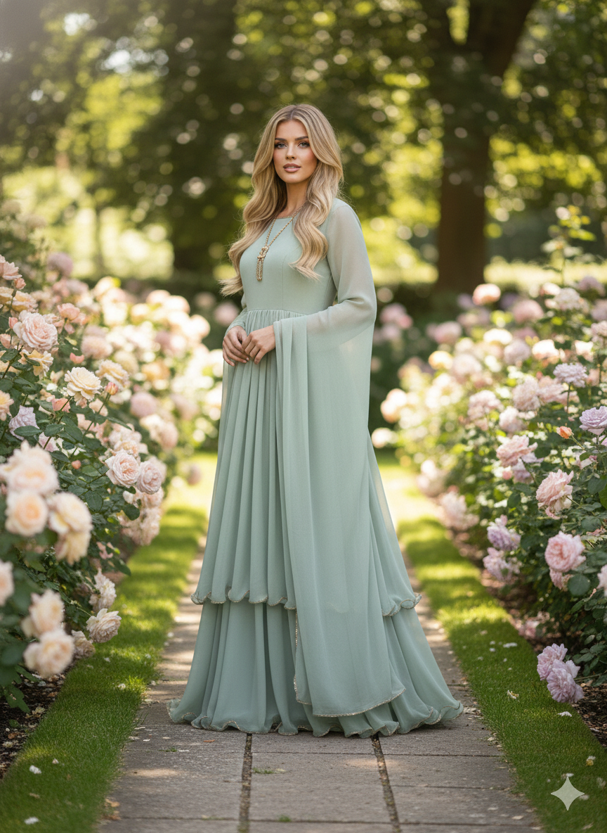 This is a ready-to-wear formal frock made with high-quality chiffon fabric. The design is elegant and suitable for party or formal occasions, part of the Sehrish B Formals collection.